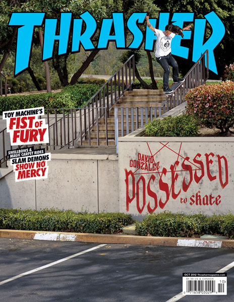 Free stickers in every copy of our October mag! With the cover and an 18-page interview, David Gonzalez is possessed to skate; Slam Demons show no mercy; Krooked takes on Colorado; Toy Machine gets weird in the West; Detroit Rock City is reborn.