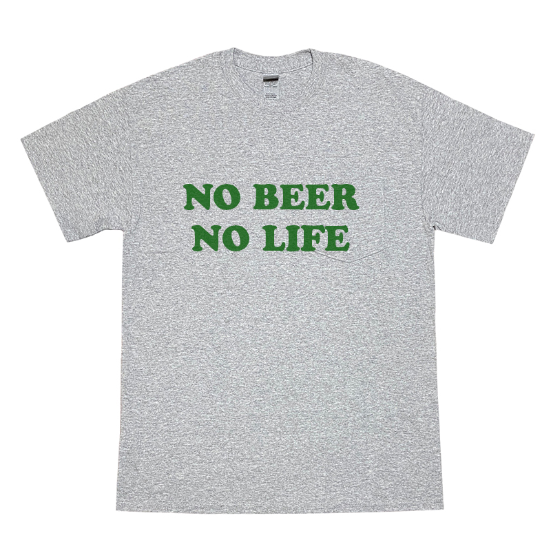 NO BEER NO LIFE POCKET Tシャツ (GREY/BRITISH GREEN)